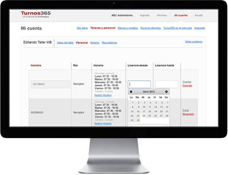 Al mismo tiempo, todos los empleados de la concesionaria pueden acceder a Turnos365 vía web para registrar turnos que sus clientes hacen por teléfono o en persona.